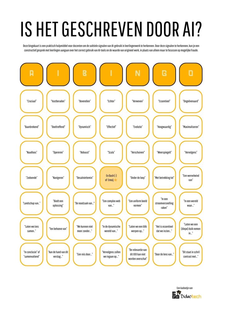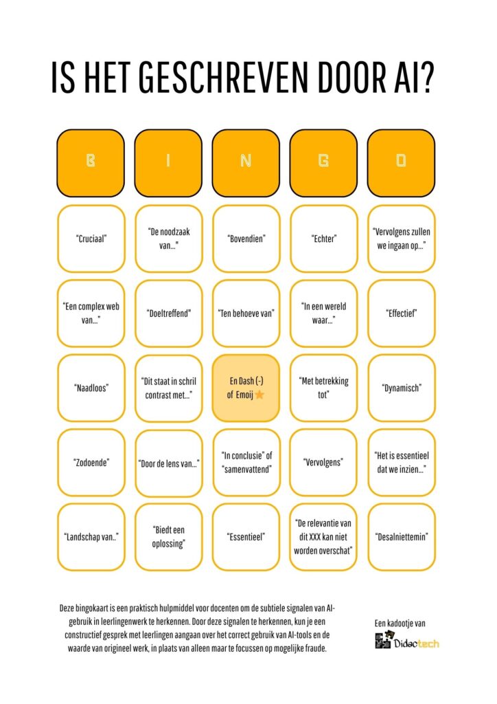 Deze bingokaart is gemaakt met behulp van AI. Zelf zoiets maken? Boek een workshop bij Didactech.